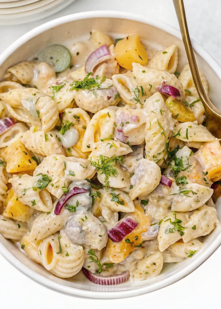 What makes Dill Pickle Pasta Salad even better is its simplicity. You don’t need fancy ingredients or advanced cooking skills to make it. If you can boil pasta and stir a few ingredients together, you’re already halfway there. Kids enjoy its creamy texture and mild crunch, while adults appreciate the bold, tangy flavor that sets it apart from traditional pasta salads. Once you try it, this recipe has a way of quickly becoming a household favorite.